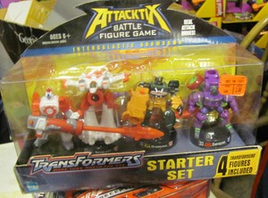 In line with other Attacktix games, the Transformers system involves familiar character figures equipped with both The Starter Set contains the following
